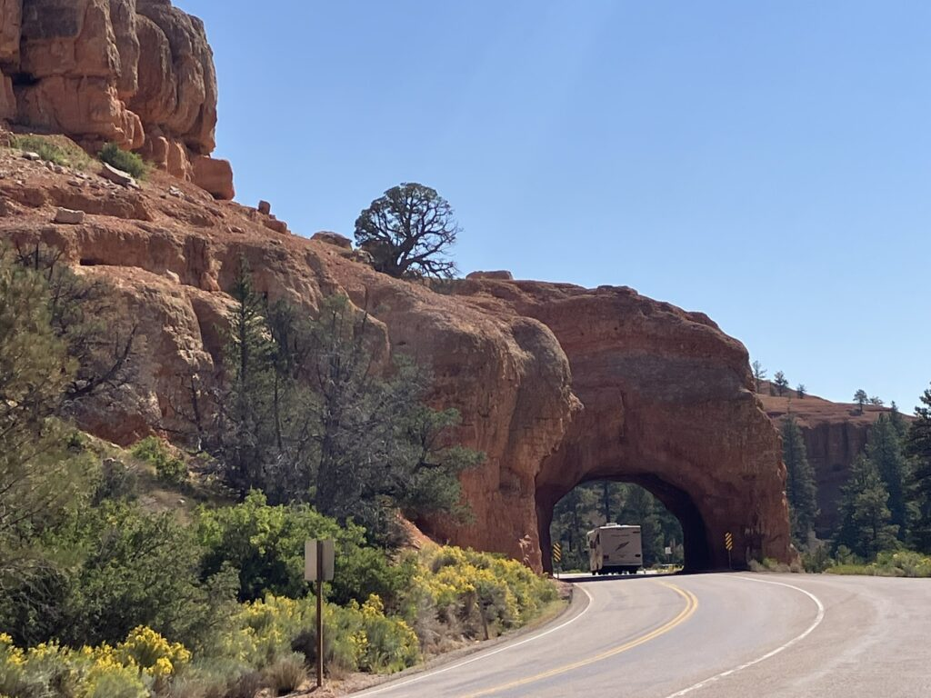 On the way to Bryce, we passed through several small towns, including Panguitch, where DeLynn was born, not too far from here, and then Red Canyon, part of the Dixie National Forest, with its road tunnels carved through the stone. Red Canyon – and it is really red – in itself would be worth a decent visit, and is, of course, beautiful, like all the other parks and forest areas, and just plain roadside scenery.