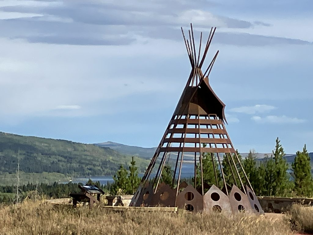 Nearing the park, besides the increasingly looming Rockies, there is a site describing the Blackfeet territory that road is passing through, and a couple of lovely statues commemorating the Blackfeet way of life.