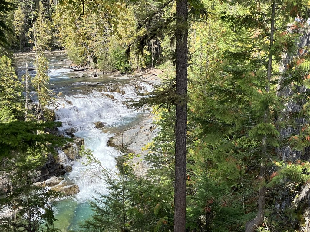 I came across Sacred Dancing Cascade, which aside from anything else iks a lovely name. It runs along McDonald Creek, which is a 25 mile river connecting McDonald Lake and St. Mary Lake. I took a short hike, crossing the river at one point, and got views from both sides.