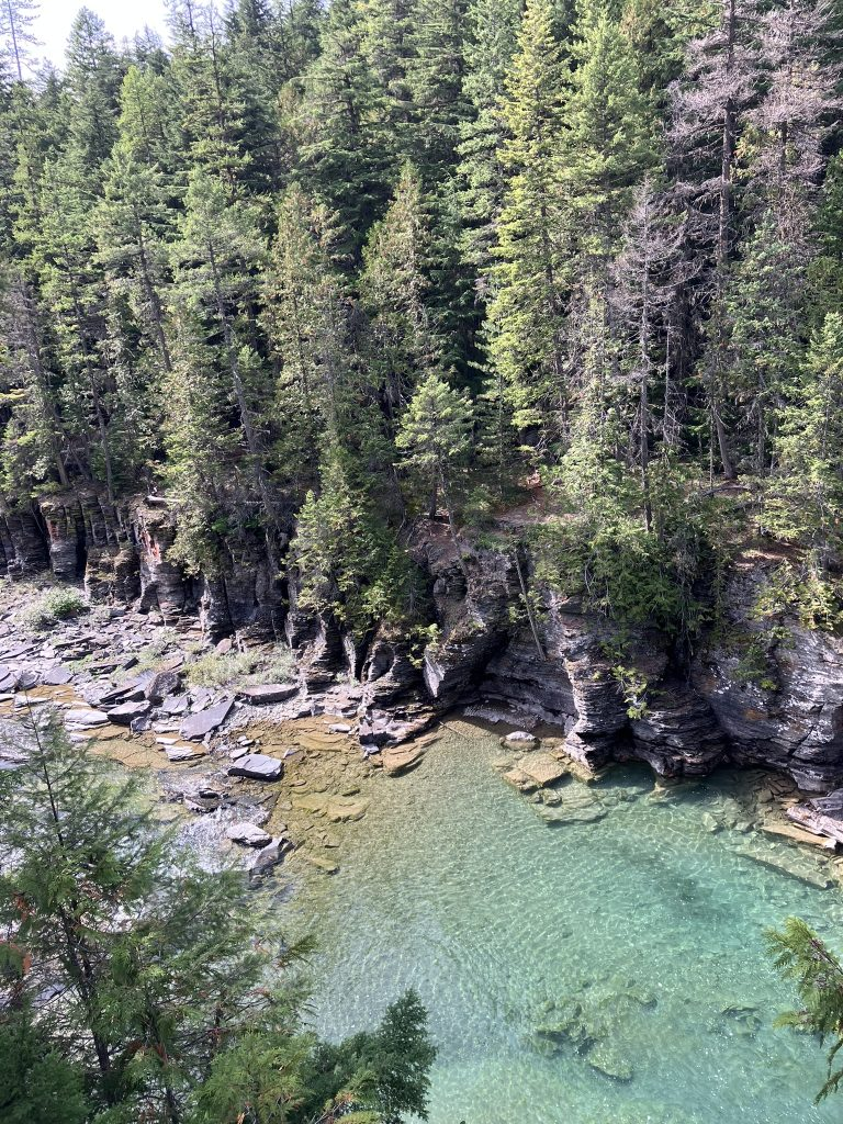 From Sun Point, there’s a nice trail that goes to three different falls, Baring Falls, St. Mary Falls, and Virginia Falls trails, with Virginia Falls the furthest away and the most arduous as it goes uphill quite a ways, i think. I started along that trail, first visiting the Sunrift Gorge, along a short side trail, and then planning to head further along to the first of the three falls. I never actually past the Sunrift Gorge, though.