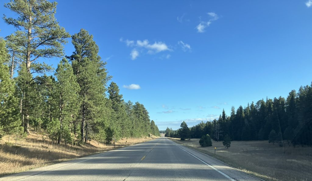The trip took a little over eight hours, as I made a few stops along the way. As I get further north, dusk starts to descend before 6, and by 6:30 it’s already dark. By the time I got to Deadwood, around 7, it was pitch black.