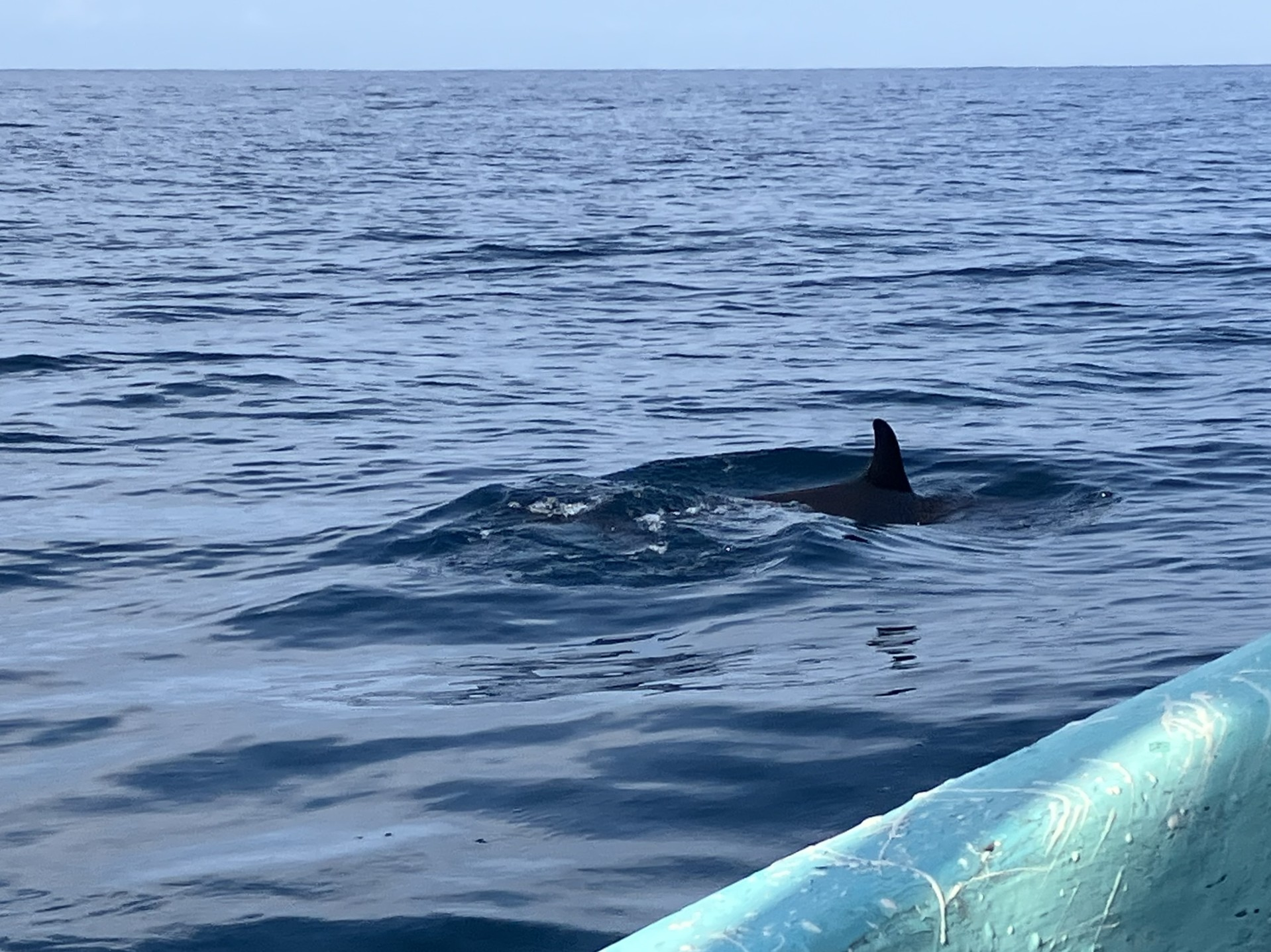 The trip was probably a little over two hours, and we headed out, I guess maybe 3 miles, seeing some whales breaching the water along the way, scores of small jellyfish in the water, and quite a few dolphins, also breaching the water, and sometimes swimming in small groups of two or three. I also got to see a sea turtle, flapping its paddles and working its way through the water, which seemed pretty slow going.