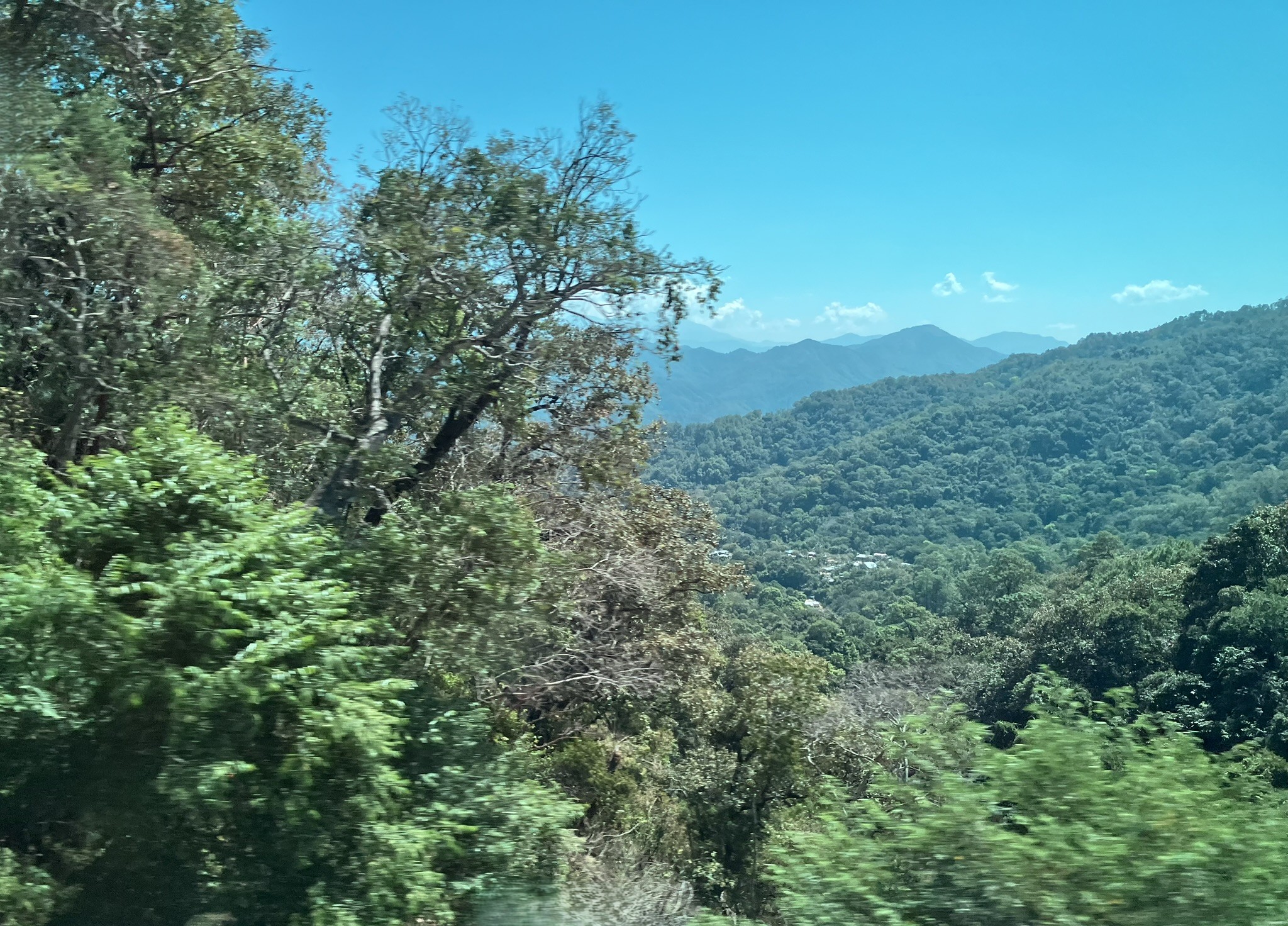 The drive back was great. I had the best seat on the bus. We passed along the local roads, heading toward the Sierra Madre range, known as Sierra Madre de Oaxaca, or Sierra Madre Sur (Sierra Madre Nord is, unsurprisingly, north of the city), and we entered the new road, which is still partly under construction, and sometimes clearing rock slides, passing through the toll gates and moving to higher elevations, reaching I think as as high as 9 or 10,000 feet, with magnificent views of the dense and endless forests and mountains, and sometimes villages off in the near distance. I took many photos, but through the front and side window so not sure how they’ll look.