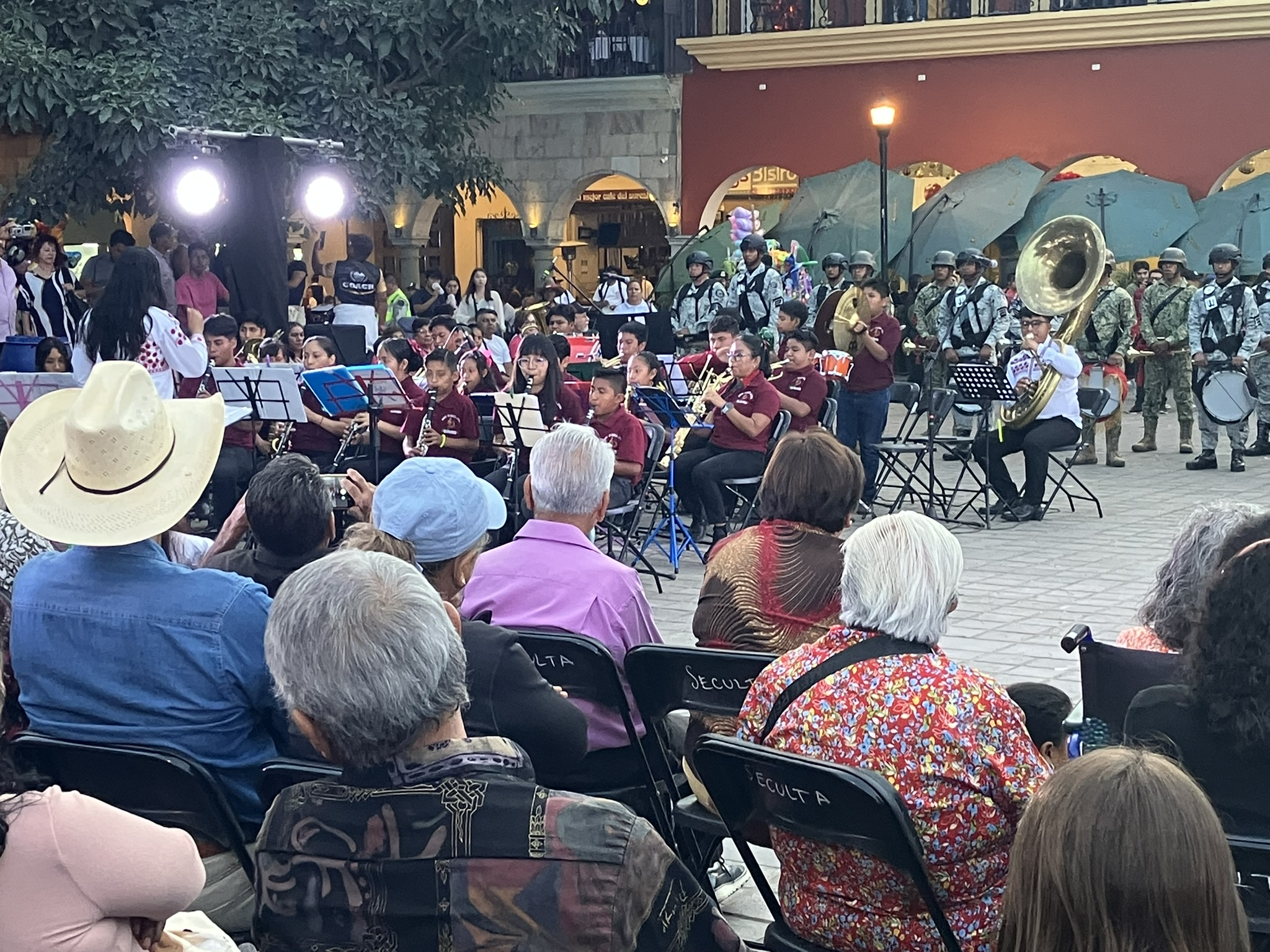 But even that’s not all. After leaving the wedding parade, I headed for the bustling Zócalo where another outdoor concert was underway. Wow. This was a concert by a student orchestra, followed by a concert performed by the Guardia Nacionale.