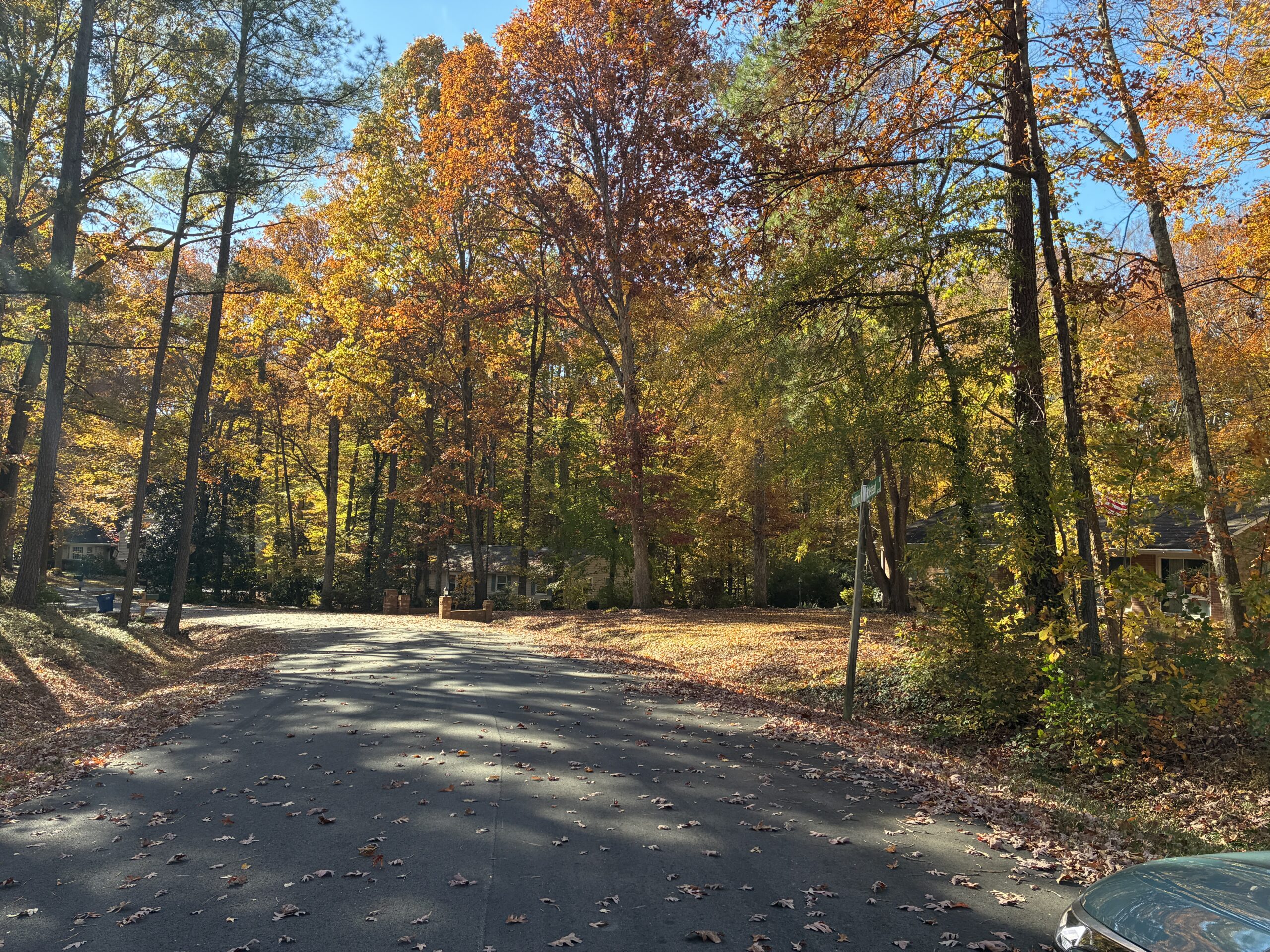 Josh and I spent a couple of hours talking this morning, before I headed out, heading south to Myrtle Beach, South Carolina, for my next stop. Josh’s neighborhood is very nice, with nice looking residential streets and homes, framed by large trees adorned with autumn leaves.