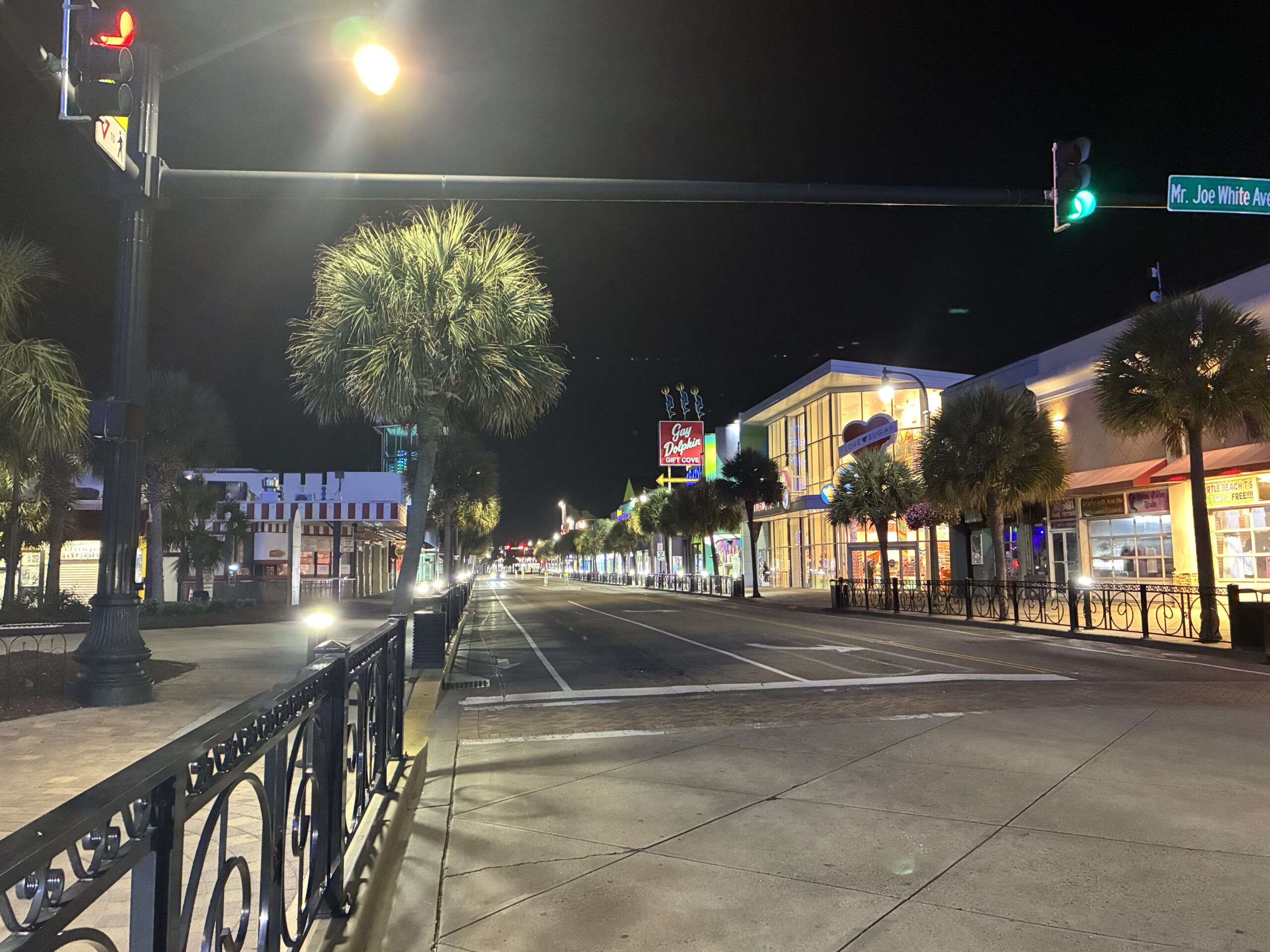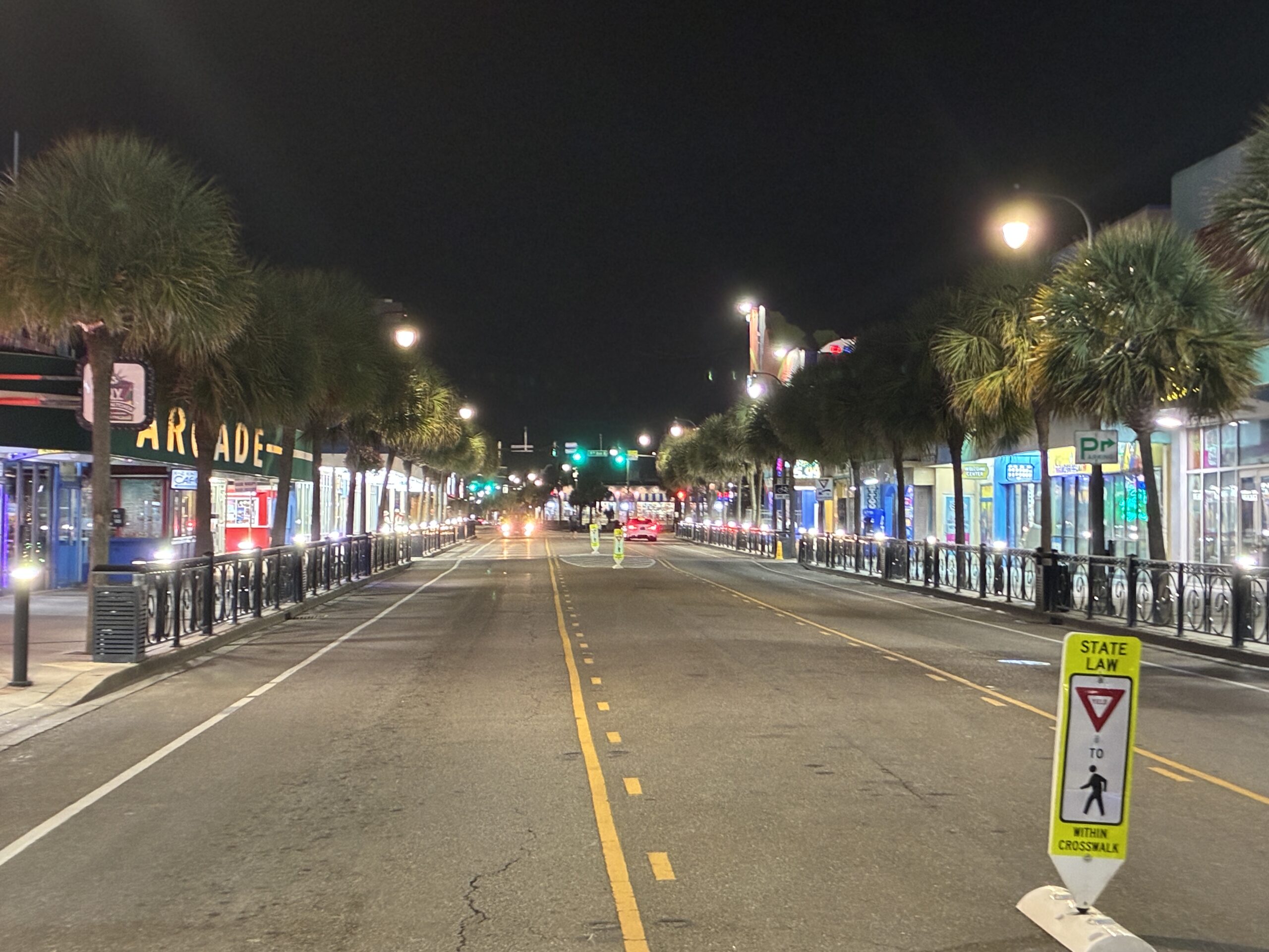 After walking the boardwalk and downtown North and South Ocean, headed back to North Myrtle Beach, but this time headed along North Ocean Boulevard as it left the downtown area heading north, becoming a quiet and unlit road that runs along the Atlantic and is lined by large houses and apartments with beach and ocean views, and high rise hotels and apartments on the opposite side, backing onto the beach. A much nicer road to drive than 31, which I came in on, and a road I’ll take tomorrow coming back into town, so I can see how t actually looks in the daylight. Should be lovely.