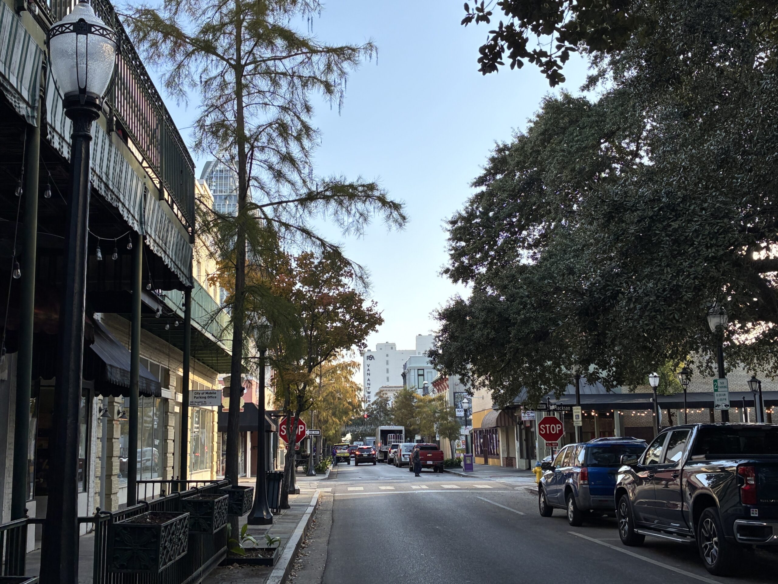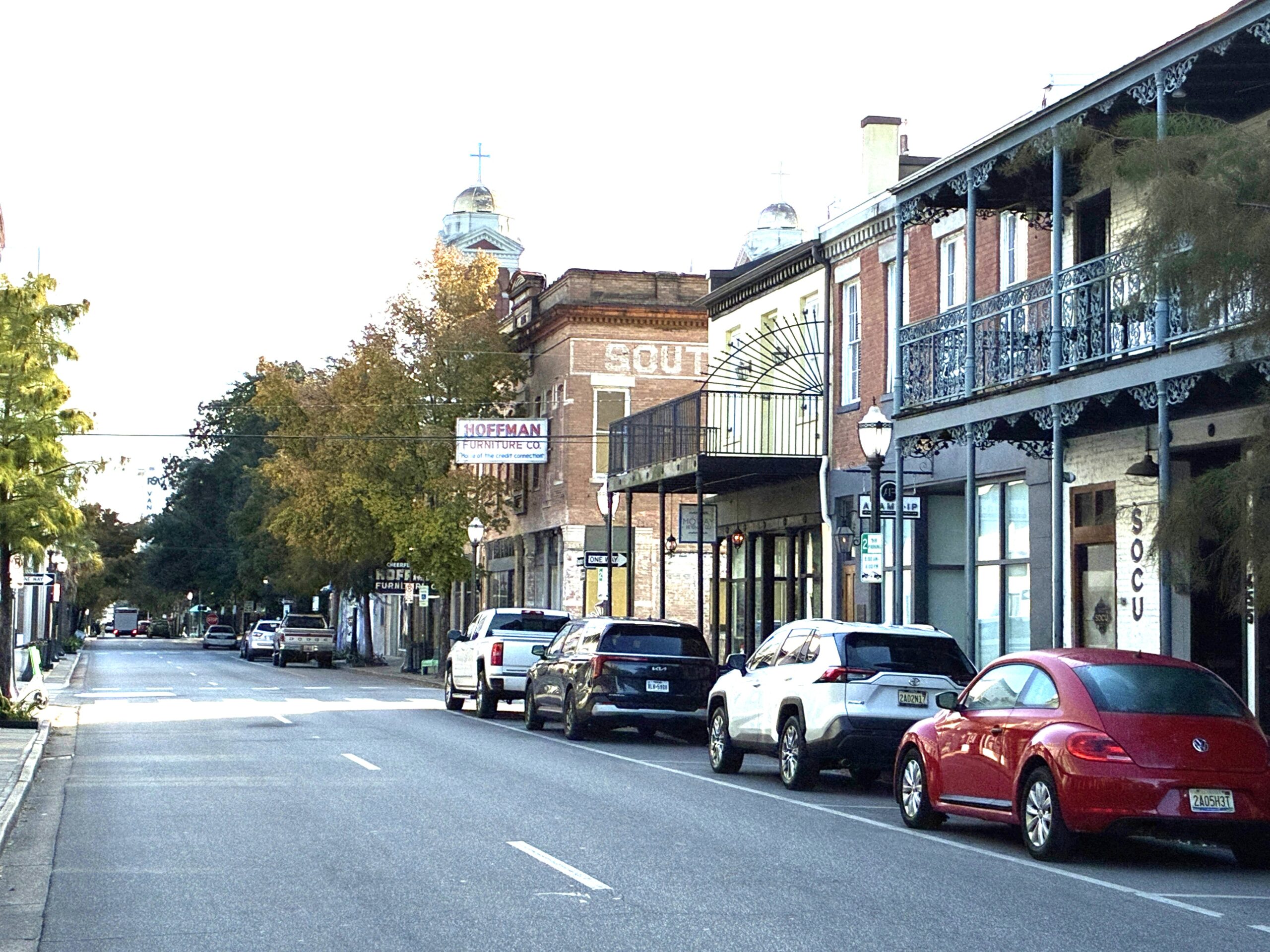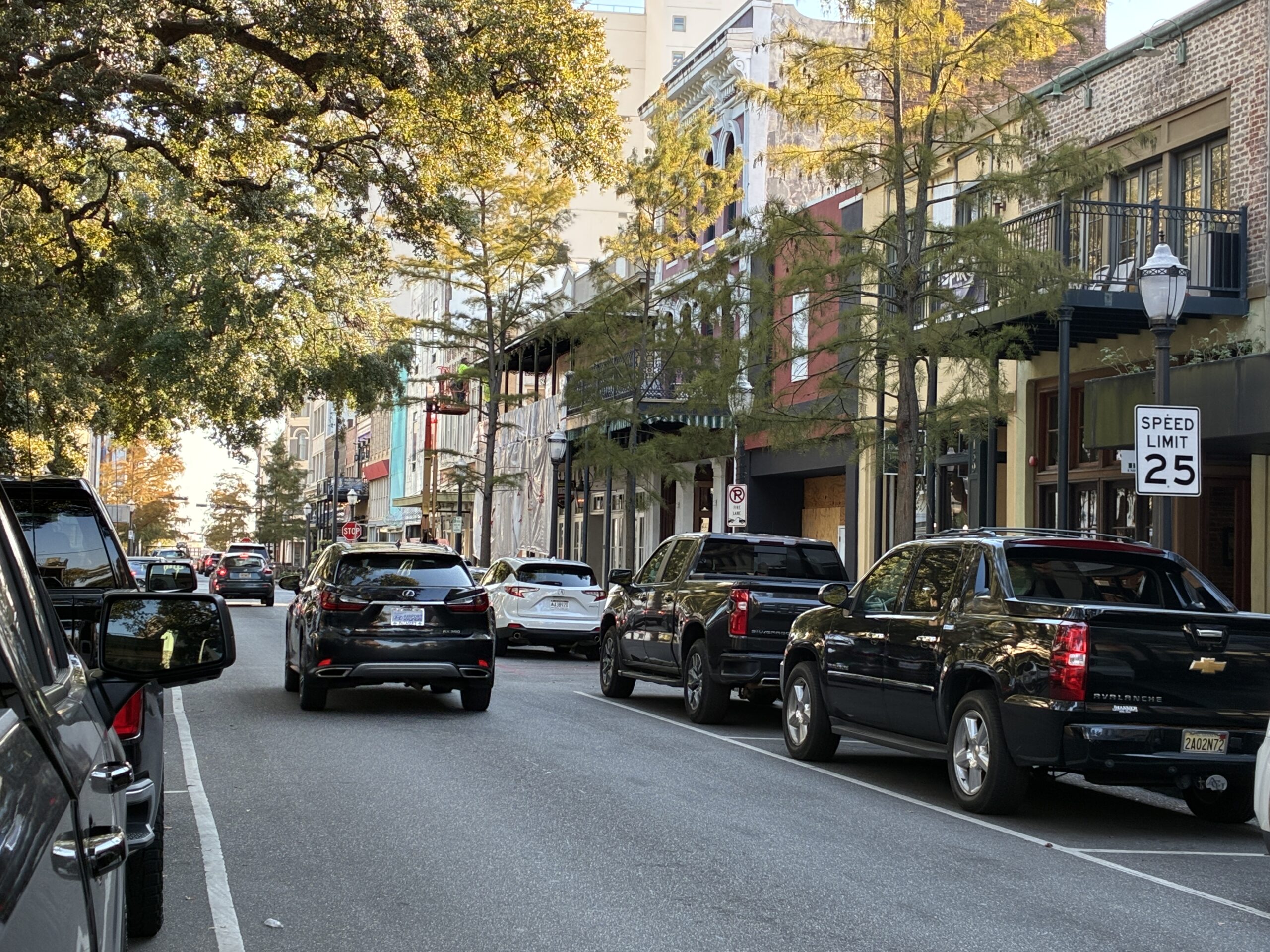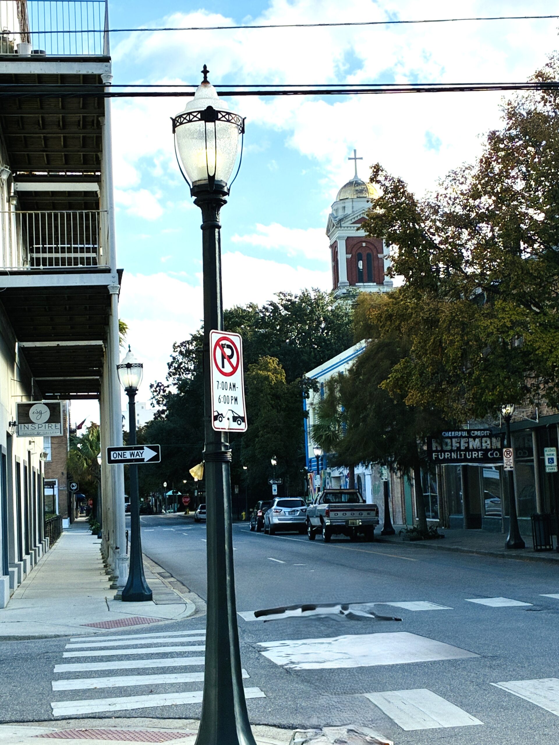 But before that, I took a quick drive tour of Mobile, where I’d stayed the night. It’s quite a lovely city, and another city with that Antebellum southern look, with a similar look to New Orleans it turns out. I hit the road by about 7:30, and it was definitely shorts and sandals weather, and I had a good chunk of time to cruise Mobile and take a look around. The interstate was jammed, but I was able to get into town without having to negotiate that mess, and I was able to get downtown via Dauphin street, which I had visited last night and was jumping. Looked a little different in the daylight, and pretty empty.