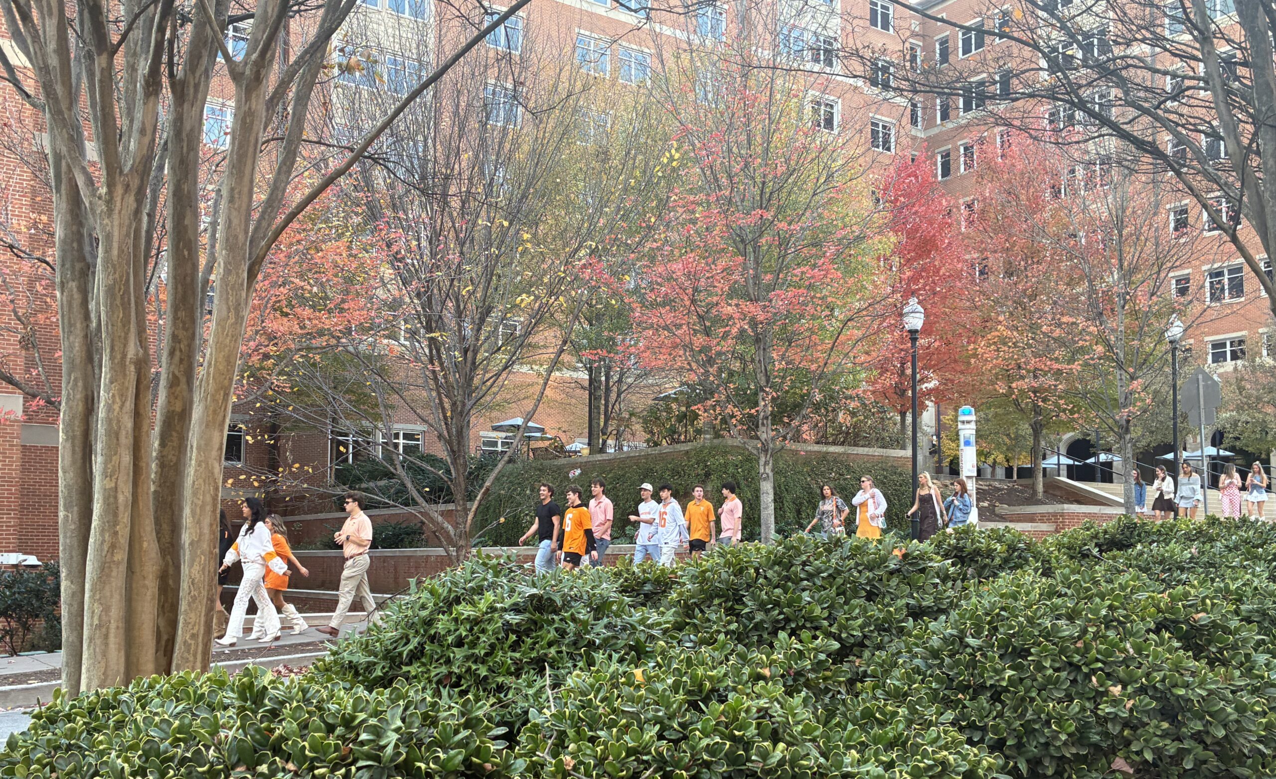Knoxville is home to the University of Tennessee, which it just happens had a big game today. The Tennessee Volunteers, the university football team, was playing New Mexico State, and down near and around the university there was, I’d guess, thousands of people of all ages (but mostly students it seems), thronging the streets, heading to the game at Neyland stadium, many dressed in orange, the colors of the Tennessee Volunteers. At one point, accompanied by a crashingly and intensely loud (no exaggeration) sound, two F-35 fighter jets flew close overhead in celebration of the game, so I guess it was really big deal. I wish I could have gotten a photo.